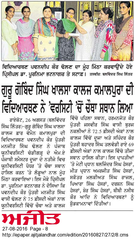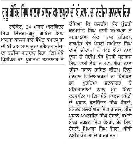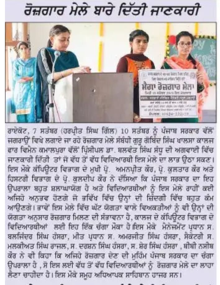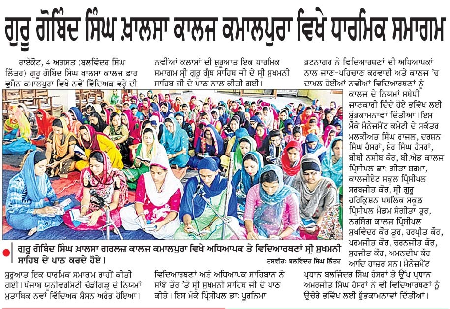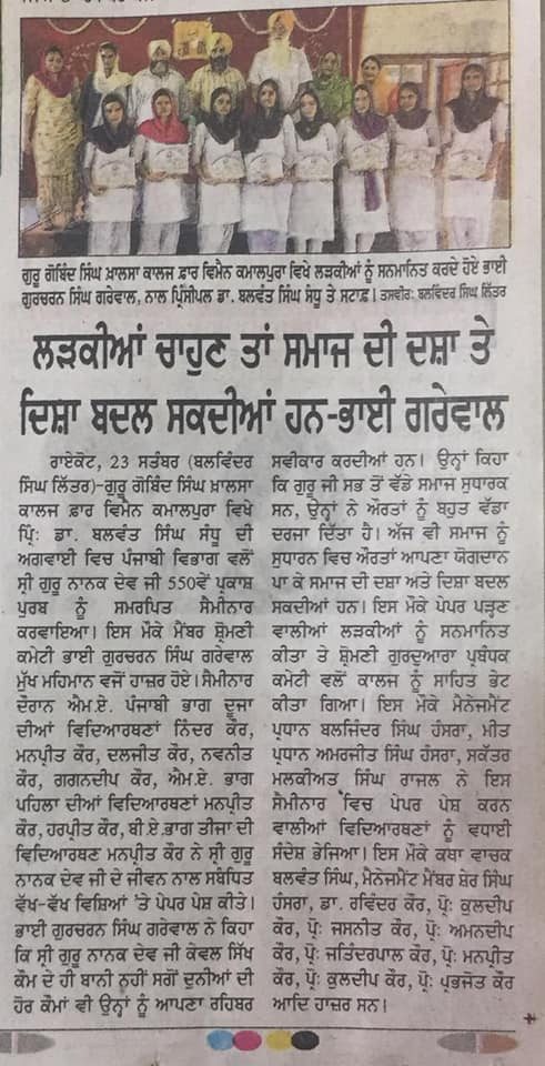 Guru Gobind Singh Khalsa college for women, Kamalpura