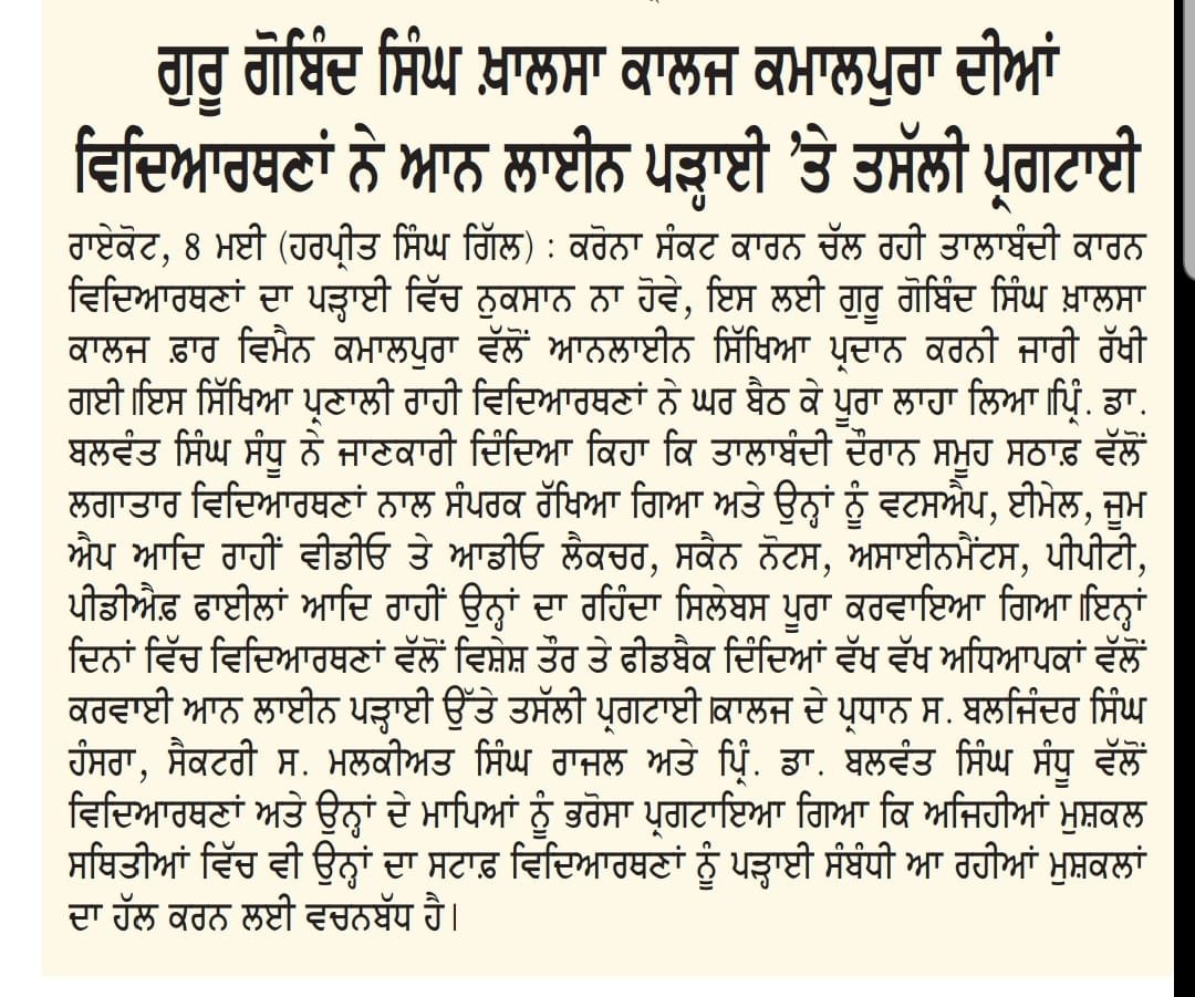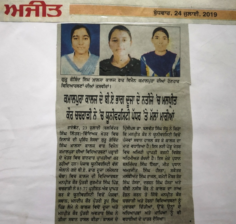 Guru Gobind Singh Khalsa college for women, Kamalpura
