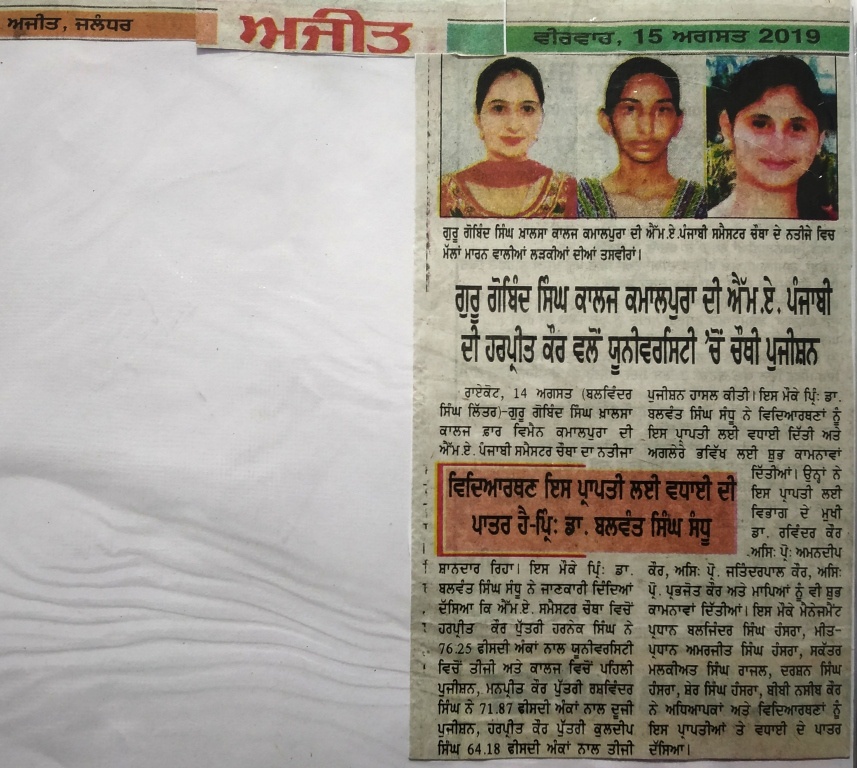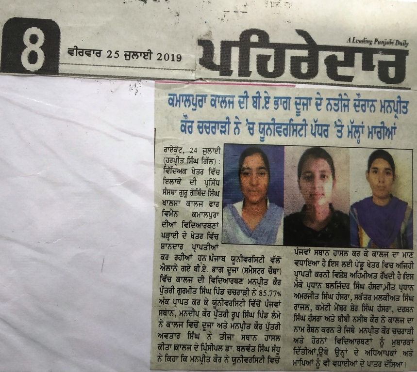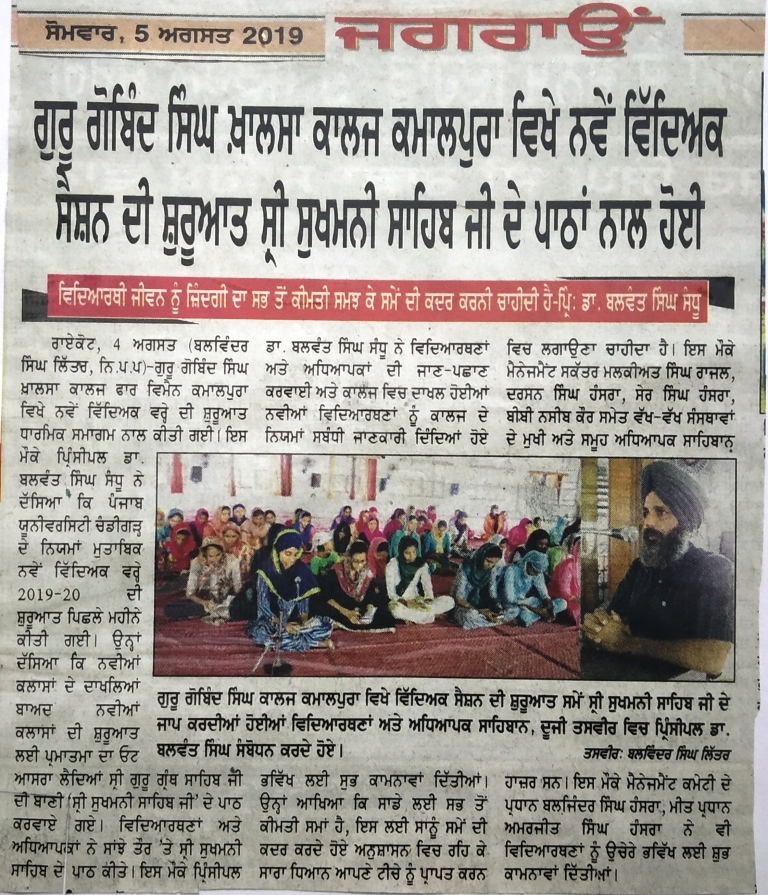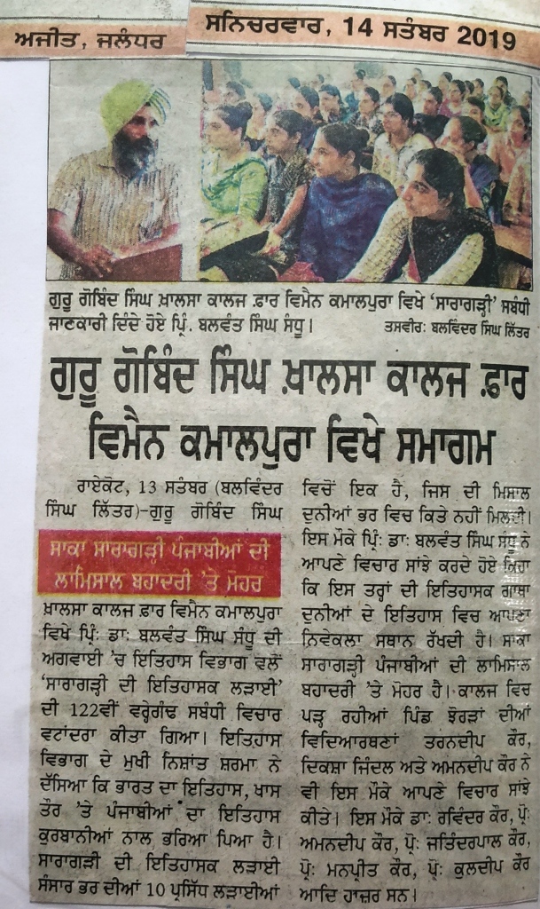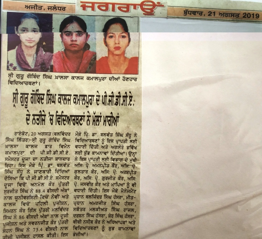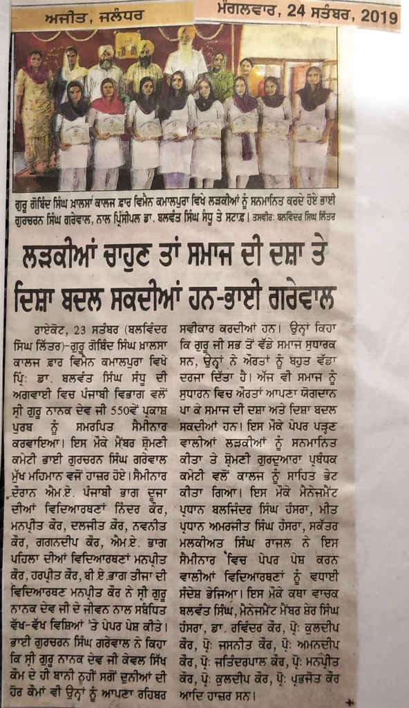 Guru Gobind Singh Khalsa college for women, Kamalpura