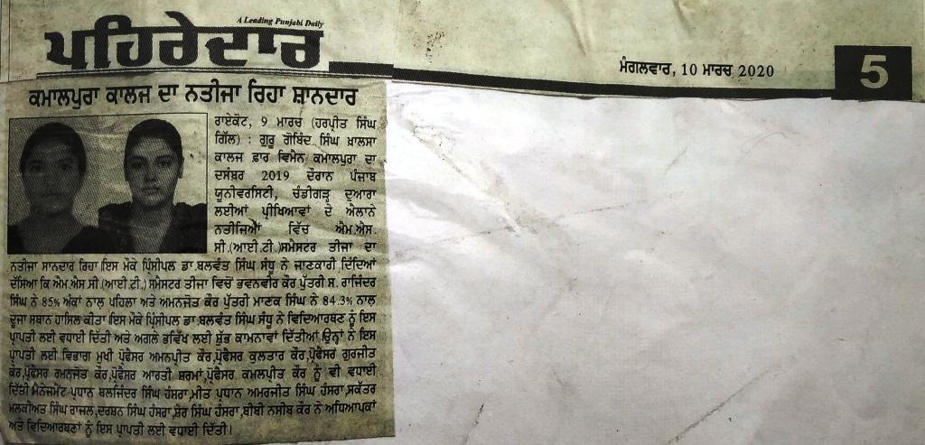 Guru Gobind Singh Khalsa college for women, Kamalpura